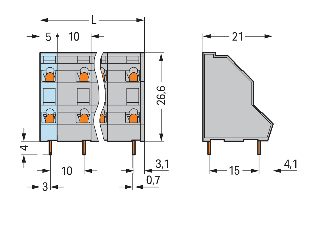 2-piętrowa złączka do płytek drukowanych 2,5 mm² RM 10 mm 12-bieg, szara 736-706