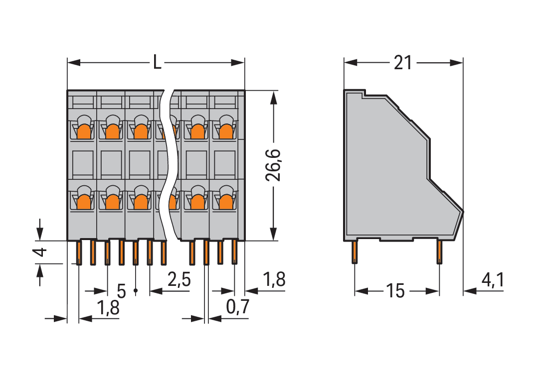 2-piętrowa złączka do płytek drukowanych 2,5 mm² RM 5 mm 8-bieg, szara 736-204