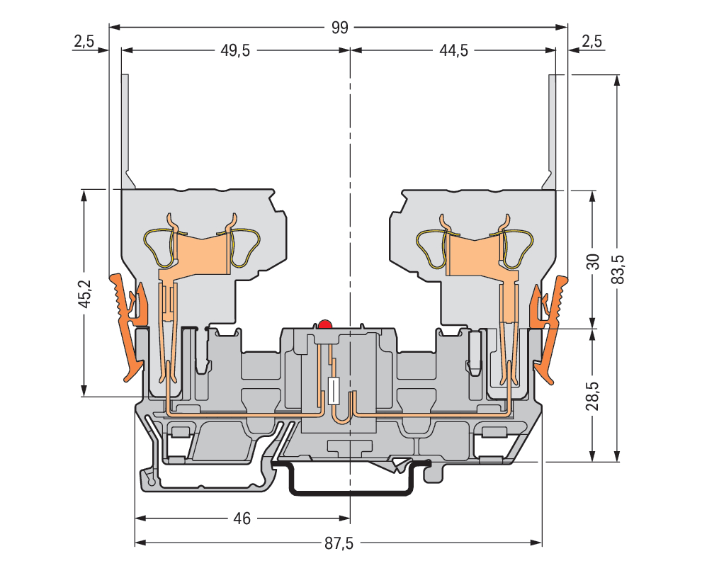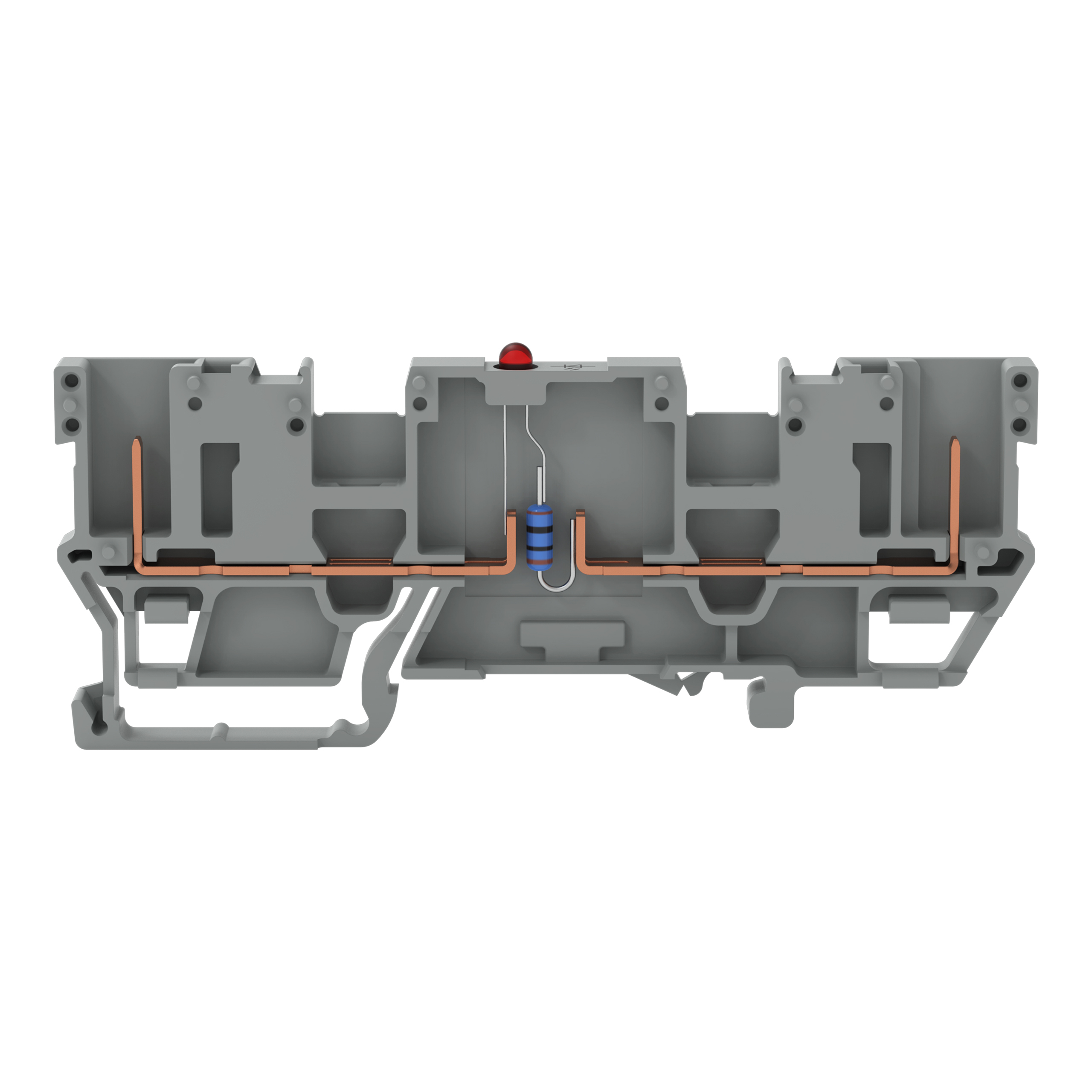 2-pinowa zł. bazowa do zabudowy element.; z podwójnym mostkowaniem; LED czerwona; 24 V DC; na szynę TS 35 x 15 i 35 x 7,5; szary