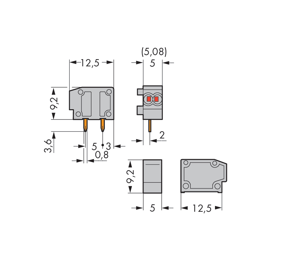 2-przew modul zł do płytek druk 0,75 mm² RM 5/5,08 mm 1-bieg, szara 235-711