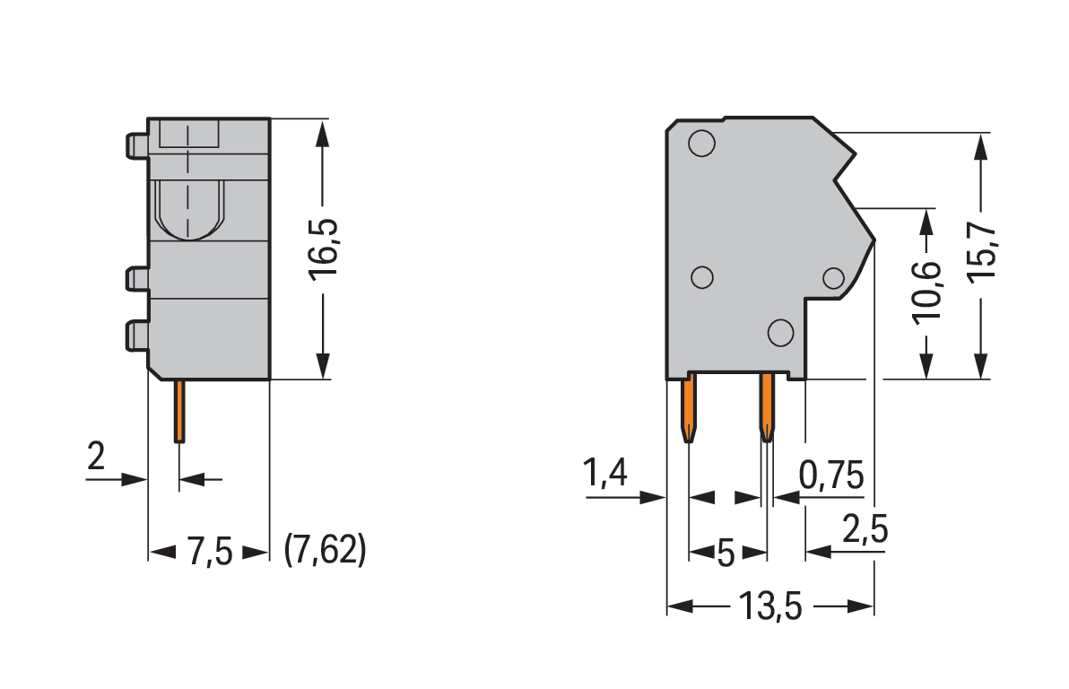 2-przew modul zł do płytek druk 0,75 mm² RM 7,5/7,62 mm 1-bieg, ciemnoszary 254-812