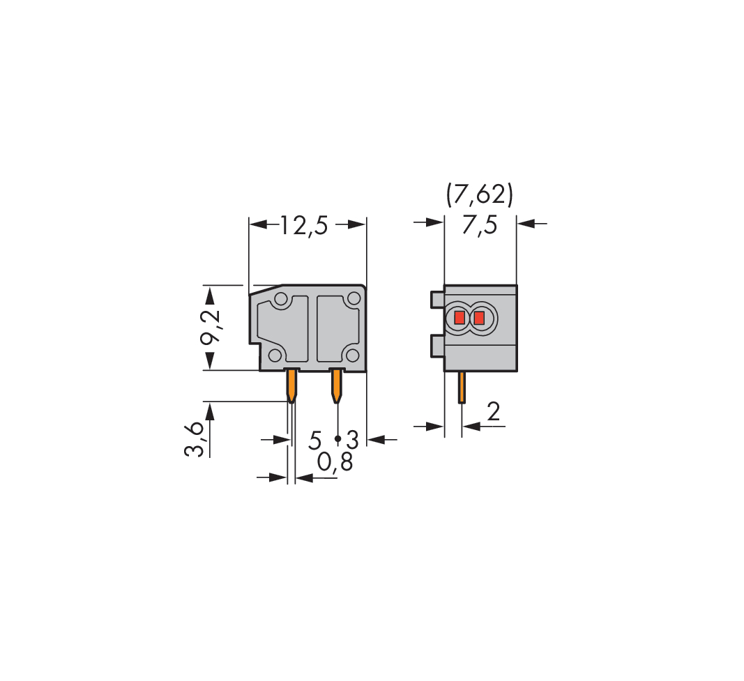 2-przew modul zł do płytek druk 0,75 mm² RM 7,5/7,62 mm 1-bieg, niebieski 235-724
