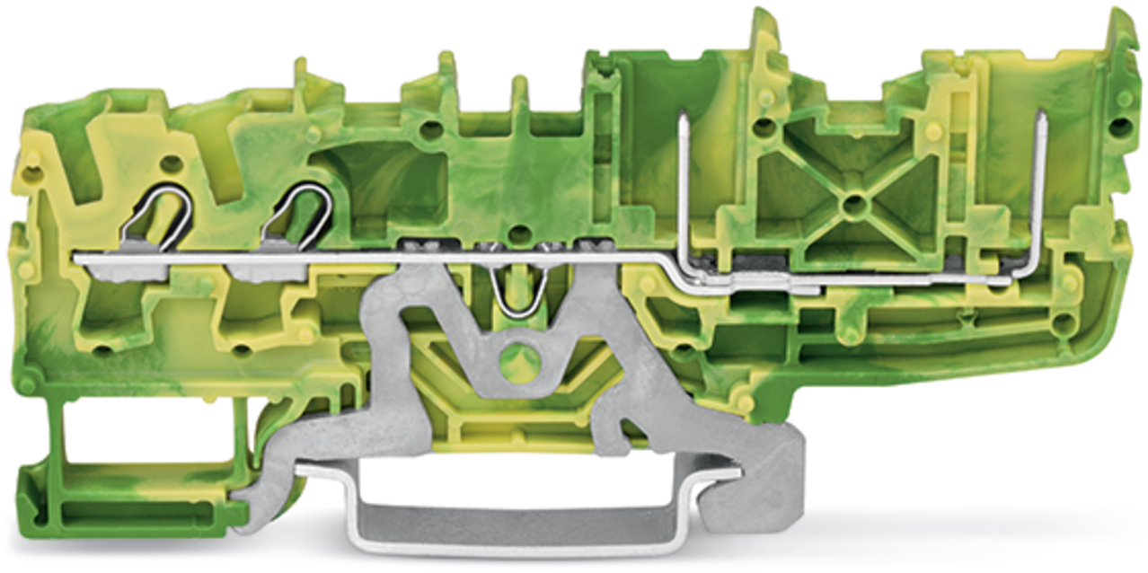złączka bazowa PE 2-przewodowa/2-pinowa; 2,5 mm²; na szynę TS 35 x 15 i 35 x 7,5; Push-in CAGE CLAMP®; 2,50 mm²; żółto-zielony