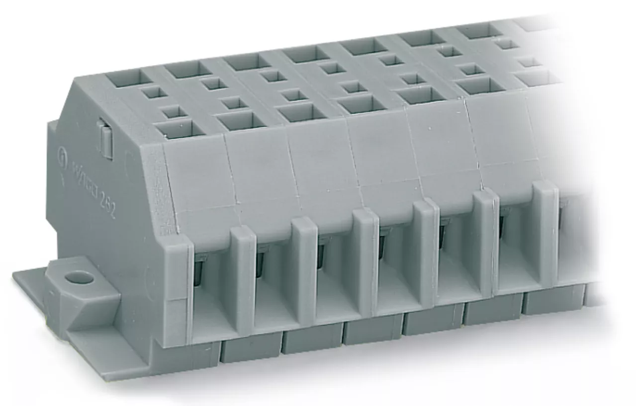 listwa zaciskowa 2-przewodowa; bez przycisków; ze stopkami zatrzaskowymi; 2-bieg.; do płyty o grubości 0,6 ... 1,2 mm; otwór montażowy Ø 3,5 mm; 4 mm²; CAGE CLAMP®; 4,00 mm²; szary