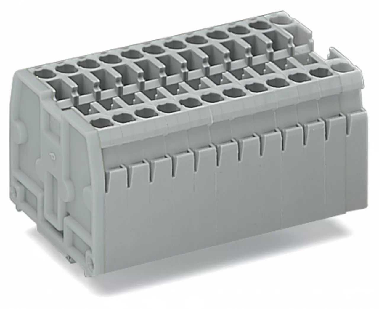listwa zaciskowa 2-przewodowa; bez przycisków; ze stopkami zatrzaskowymi; 3-bieg.; do płyty o grubości 0,6 ... 1,2 mm; otwór montażowy Ø 3,5 + 0,1 mm; 2,5 mm²; CAGE CLAMP®; jasnoszary
