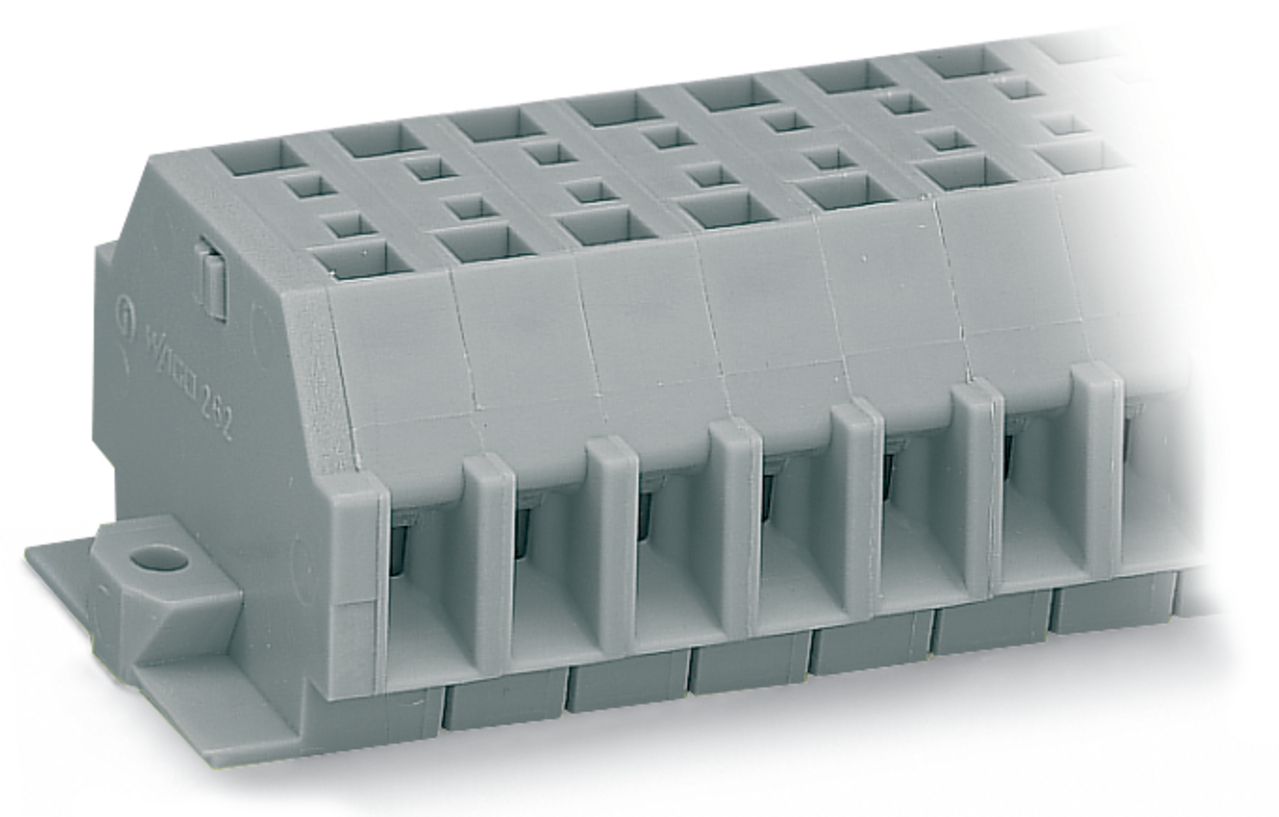 listwa zaciskowa 2-przewodowa; bez przycisków; ze stopkami zatrzaskowymi; 3-bieg.; do płyty o grubości 0,6 ... 1,2 mm; otwór montażowy Ø 3,5 mm; 4 mm²; CAGE CLAMP®; 4,00 mm²; szary