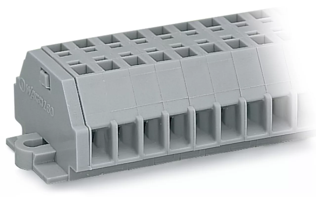 listwa zaciskowa 2-przewodowa; bez przycisków; z uchwytami montażowymi; 4-bieg.; do mocowania śrubowego i podobnego typu; otwór montażowy Ø 3,2 mm; 1,5 mm²; CAGE CLAMP®; szary