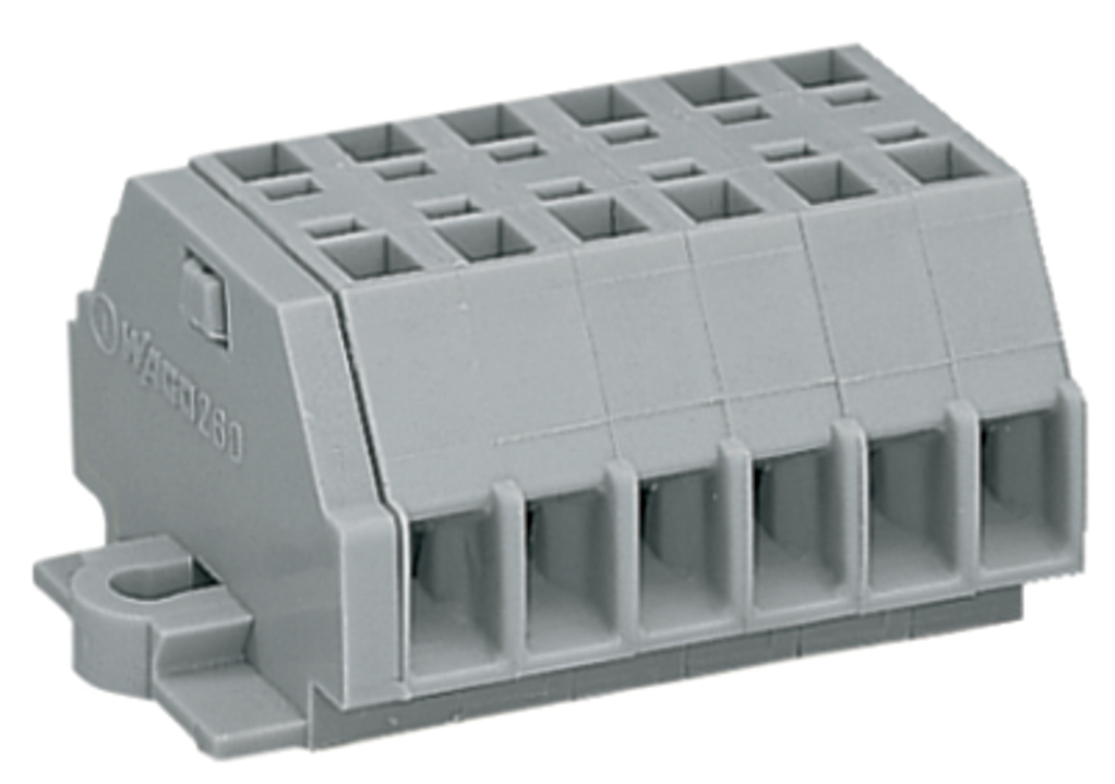 listwa zaciskowa 2-przewodowa; bez przycisków; z uchwytami montażowymi; 6-bieg.; do mocowania śrubowego i podobnego typu; otwór montażowy Ø 3,2 mm; 1,5 mm²; CAGE CLAMP®; szary