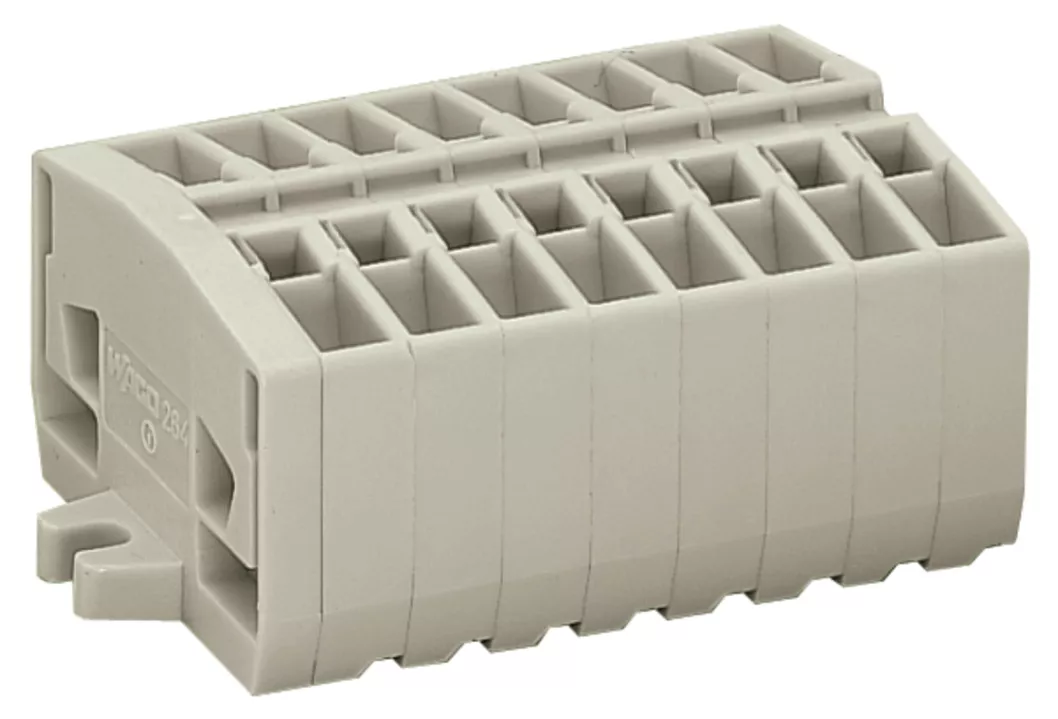 listwa zaciskowa 2-przewodowa; bez przycisków; do zastosowań Ex e II; z uchwytami montażowymi; 8-bieg.; do mocowania śrubowego i podobnego typu; otwór montażowy Ø 3,2 mm; 2,5 mm²; CAGE CLAMP®; 2,50 mm²; jasnoszary