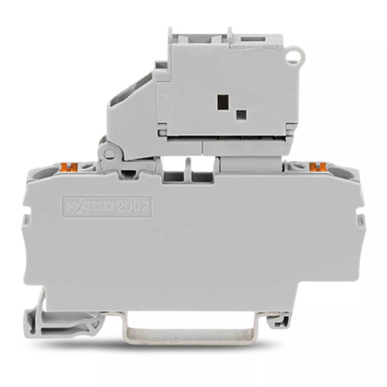 2-przewodowa złączka bezpiecznikowa z uchylną podstawką bezpiecznika i ścianka końcowa, szara 2202-1611