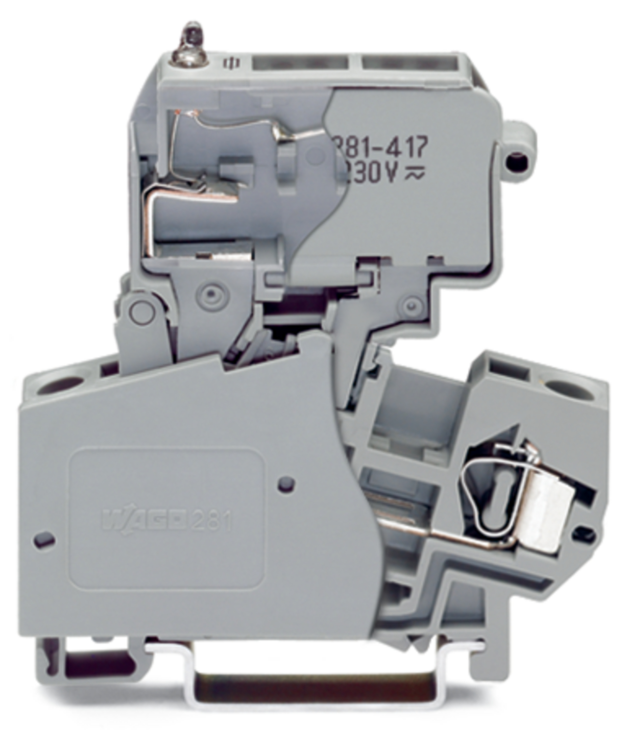 2-przewodowa złączka bezpiecznikowa z uchylną podstawką bezpiecznika, szara 281-623/281-418