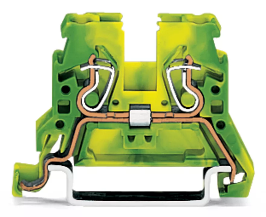 złączka PE 2-przewodowa; 2,5 mm²; do zastosowań Ex e II; boczne miejsca na oznaczniki; na szynę TS 35 x 15 i 35 x 7,5; CAGE CLAMP®; 2,50 mm²; żółto-zielony