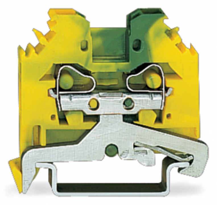 złączka PE 2-przewodowa; 4 mm²; boczne miejsca na oznaczniki; na szynę TS 35 x 15 i 35 x 7,5; CAGE CLAMP®; 4,00 mm²; żółto-zielony