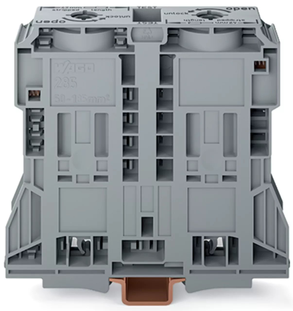 2-przewodowa złączka przelotowa 185 mm², szara 285-1185