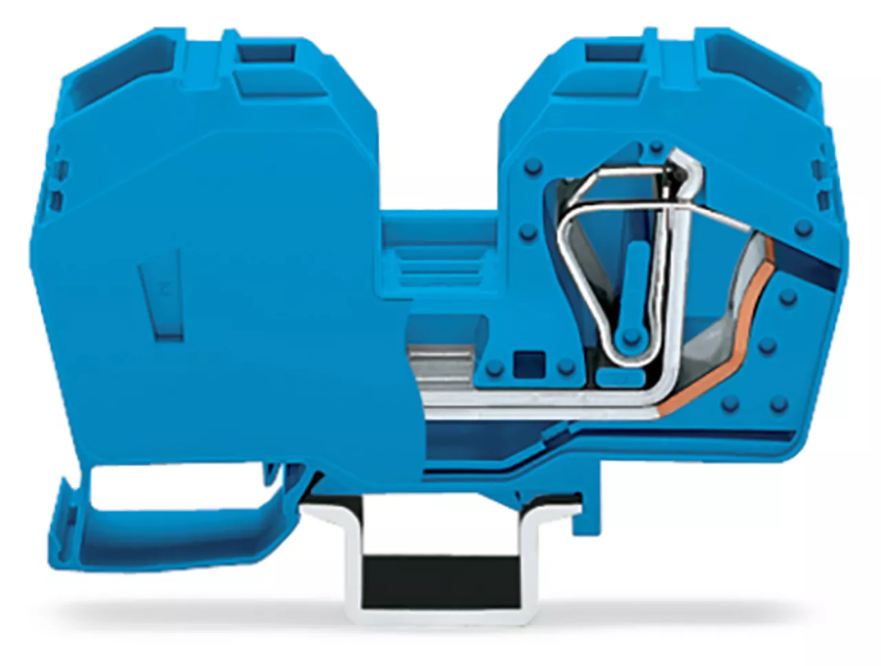 złączka przelotowa 2-przewodowa; 35 mm²; ze zintegrowaną ścianką końcową; opis z boku i na środku; tylko na szynę TS 35 x 15; CAGE CLAMP®; 35,00 mm²; niebieski