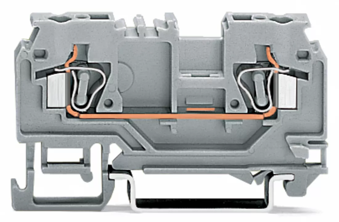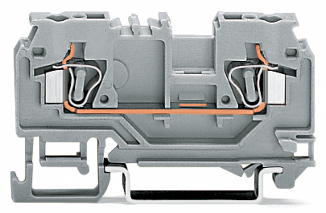 złączka przelotowa 2-przewodowa; 4 mm²; z otworem pomiarowym; bez szyny ekranowej; opis na środku; na szynę TS 35 x 15 i 35 x 7,5; CAGE CLAMP®; 4,00 mm²; pomarańczowy