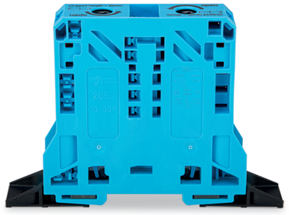 złączka przelotowa 2-przewodowa; 50 mm²; boczne miejsca na oznaczniki; z uchwytami montażowymi; POWER CAGE CLAMP; 50,00 mm²; niebieski
