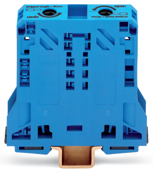 złączka przelotowa 2-przewodowa; 50 mm²; boczne miejsca na oznaczniki; tylko na szynę TS 35 x 15; POWER CAGE CLAMP; 50,00 mm²; niebieski