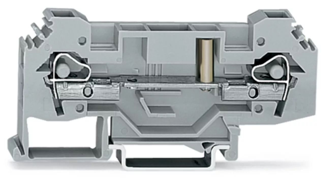 złączka przelotowa 2-przewodowa; 6 mm²; z możliwością pomiaru; do wtyku pomiarowego Ø 4 mm; o kształcie złączki rozłączalnej 2-przewodowej; boczne miejsca na oznaczniki; na szynę TS 35 x 15 i 35 x 7,5; CAGE CLAMP®; 6,00 mm²; szary