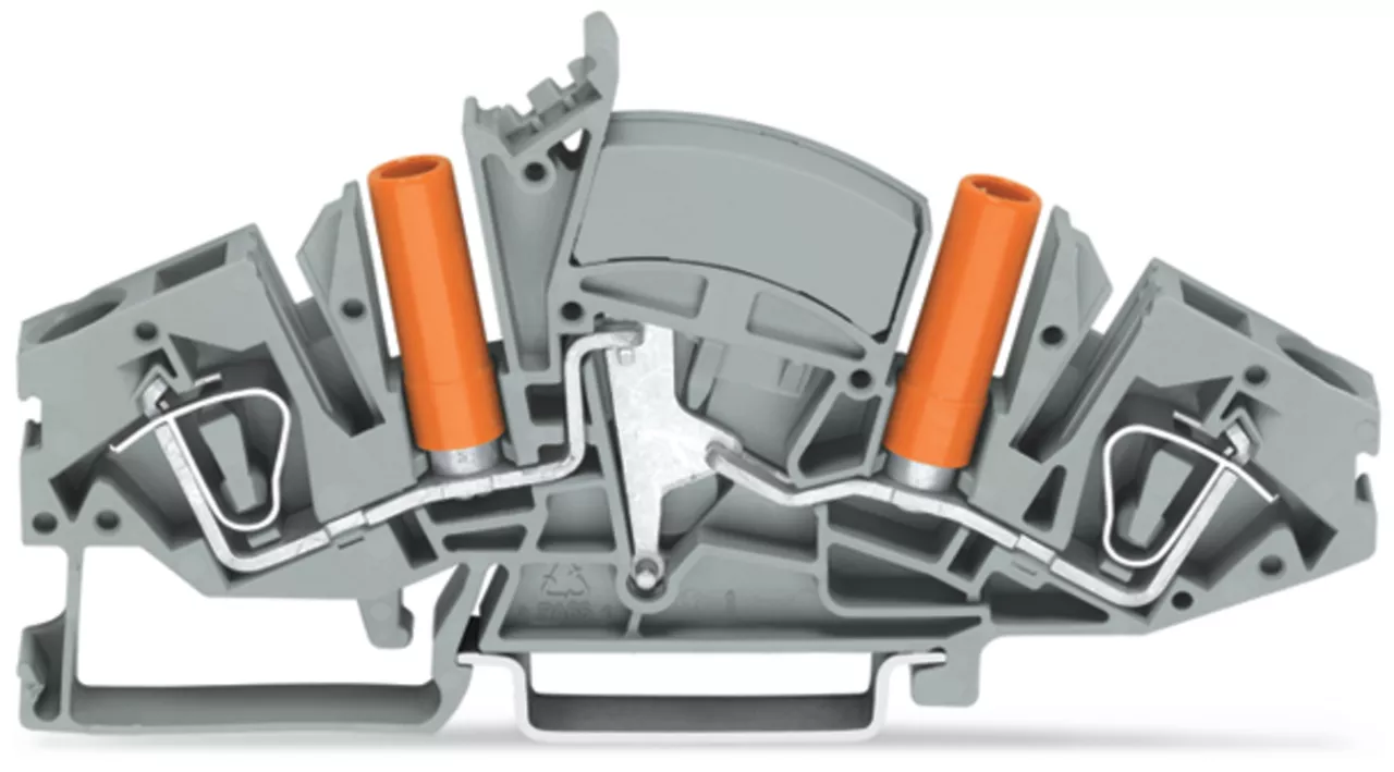 złączka przelotowa 2-przewodowa; 6 mm²; z izolowanymi gniazdami pomiarowymi; do wtyku pomiarowego Ø 4 mm; opis z boku i na środku; na szynę TS 35 x 15 i 35 x 7,5; CAGE CLAMP®; 6,00 mm²; szary