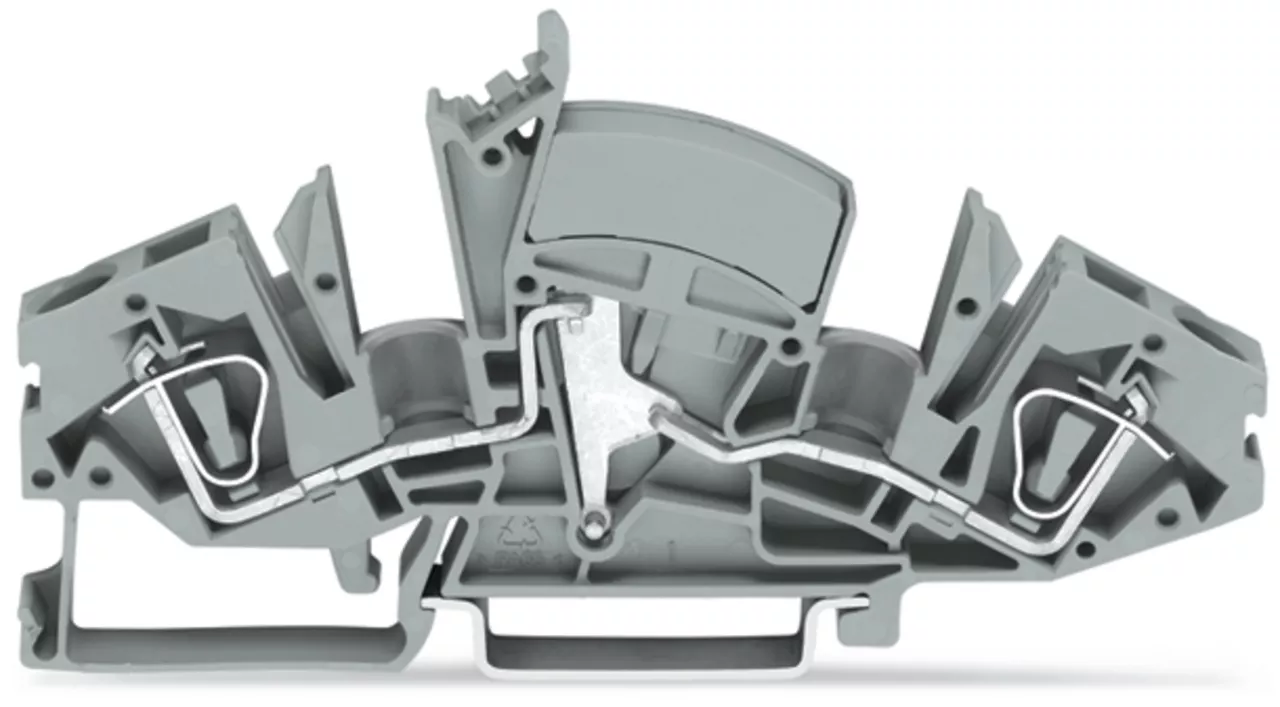 złączka przelotowa 2-przewodowa; 6 mm²; bez gniazd pomiarowych; opis z boku i na środku; na szynę TS 35 x 15 i 35 x 7,5; CAGE CLAMP®; 6,00 mm²; szary