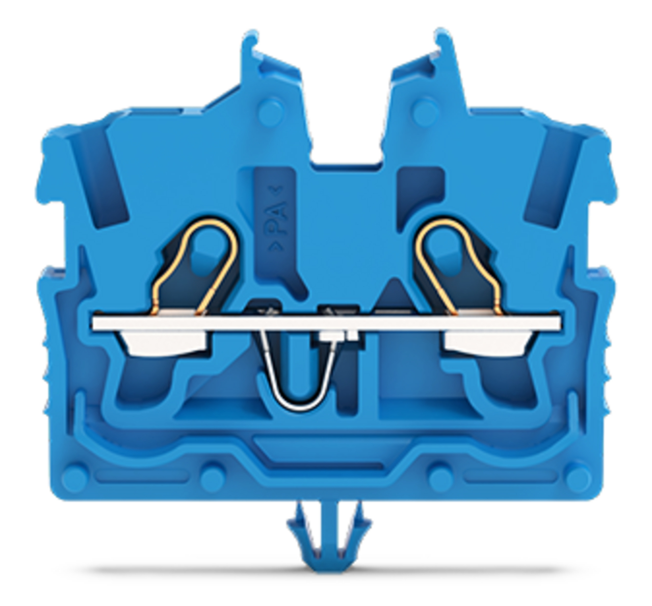 złączka przelotowa Mini 2-przewodowa; z otworem montażowym; 1 mm²; ze stopką zatrzaskową; opis z boku i na środku; z otworem pomiarowym; Push-in CAGE CLAMP®; 1,00 mm²; niebieski