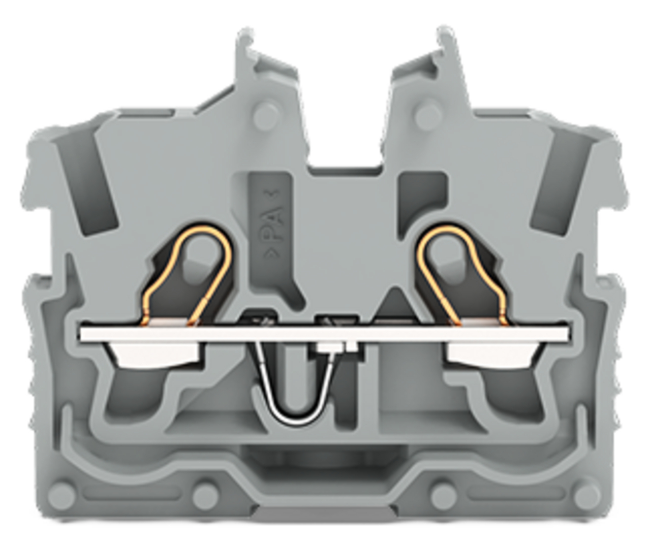 złączka przelotowa Mini 2-przewodowa; z otworem montażowym; 1 mm²; złączka końcowa z uchwytem montażowym; opis z boku i na środku; z otworem pomiarowym; Push-in CAGE CLAMP®; 1,00 mm²; szary