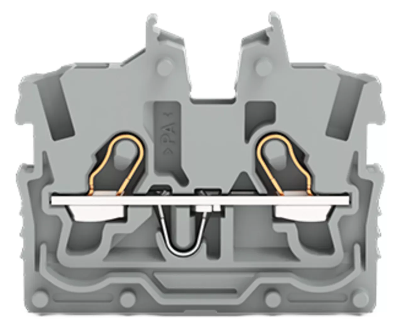 złączka przelotowa Mini 2-przewodowa; z otworem montażowym; 1 mm²; zł. wewn. bez stopki zatrz. bez uchwytu; opis z boku i na środku; z otworem pomiarowym; Push-in CAGE CLAMP®; 1,00 mm²; szary
