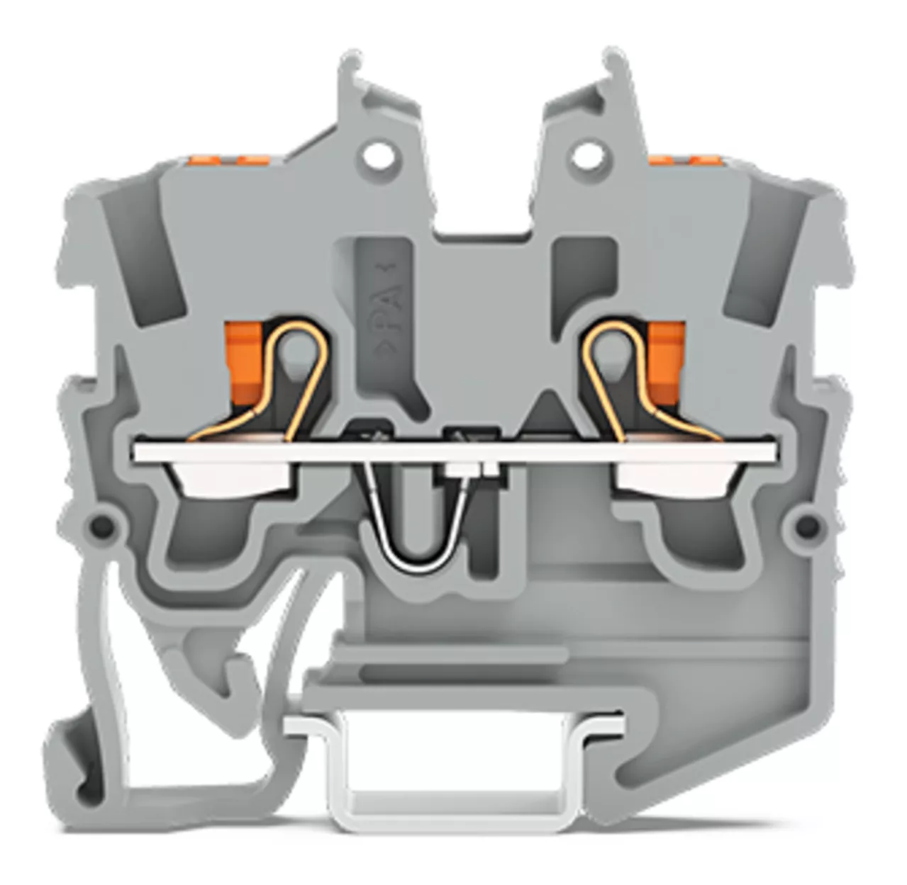 złączka przelotowa Mini 2-przewodowa; z przyciskami; 1 mm²; z otworem pomiarowym; opis z boku i na środku; na szynę 15; Push-in CAGE CLAMP®; 1,00 mm²; szary