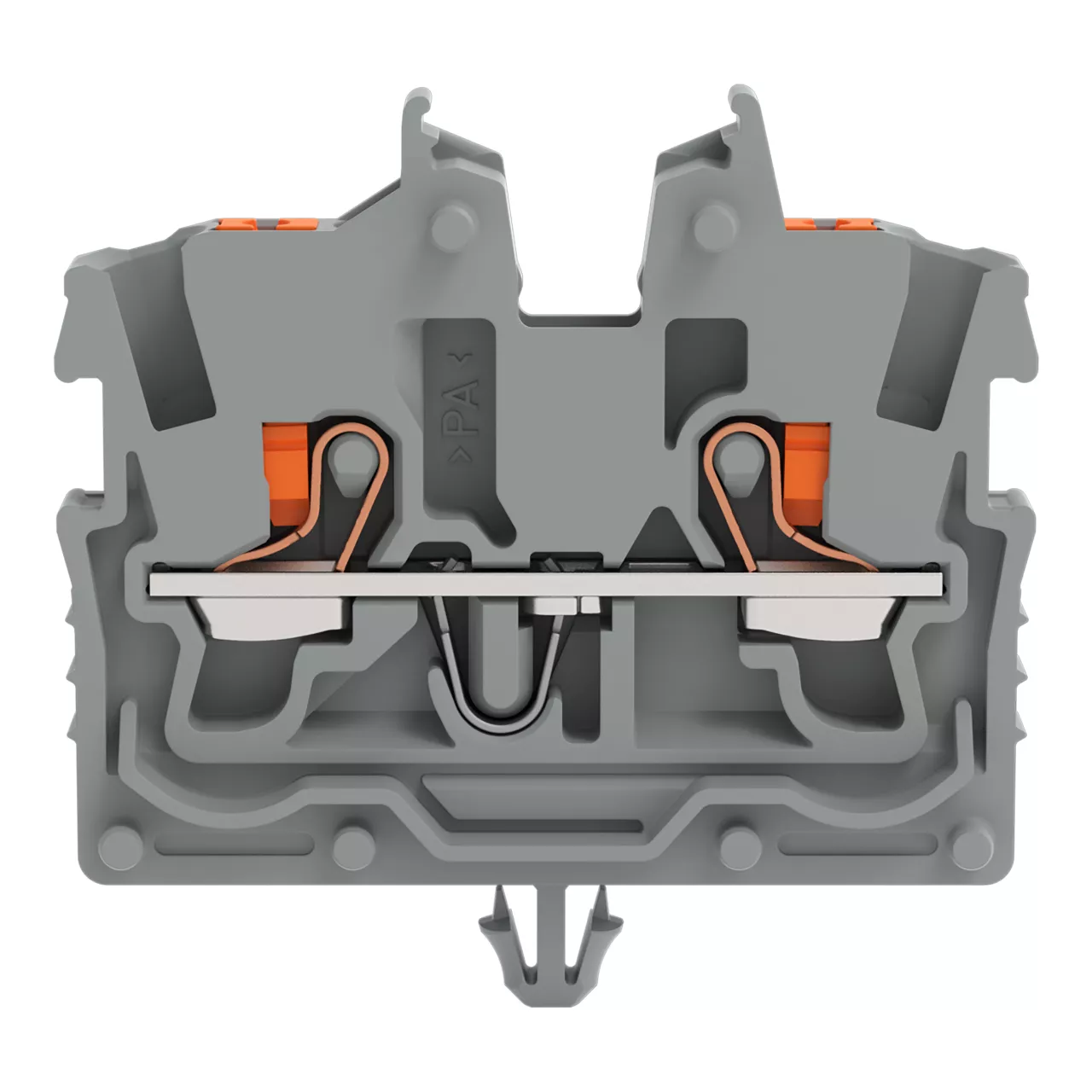 złączka przelotowa Mini 2-przewodowa; z przyciskami; 1 mm²; ze stopką zatrzaskową; opis z boku i na środku; z otworem pomiarowym; Push-in CAGE CLAMP®; 1,00 mm²; szary