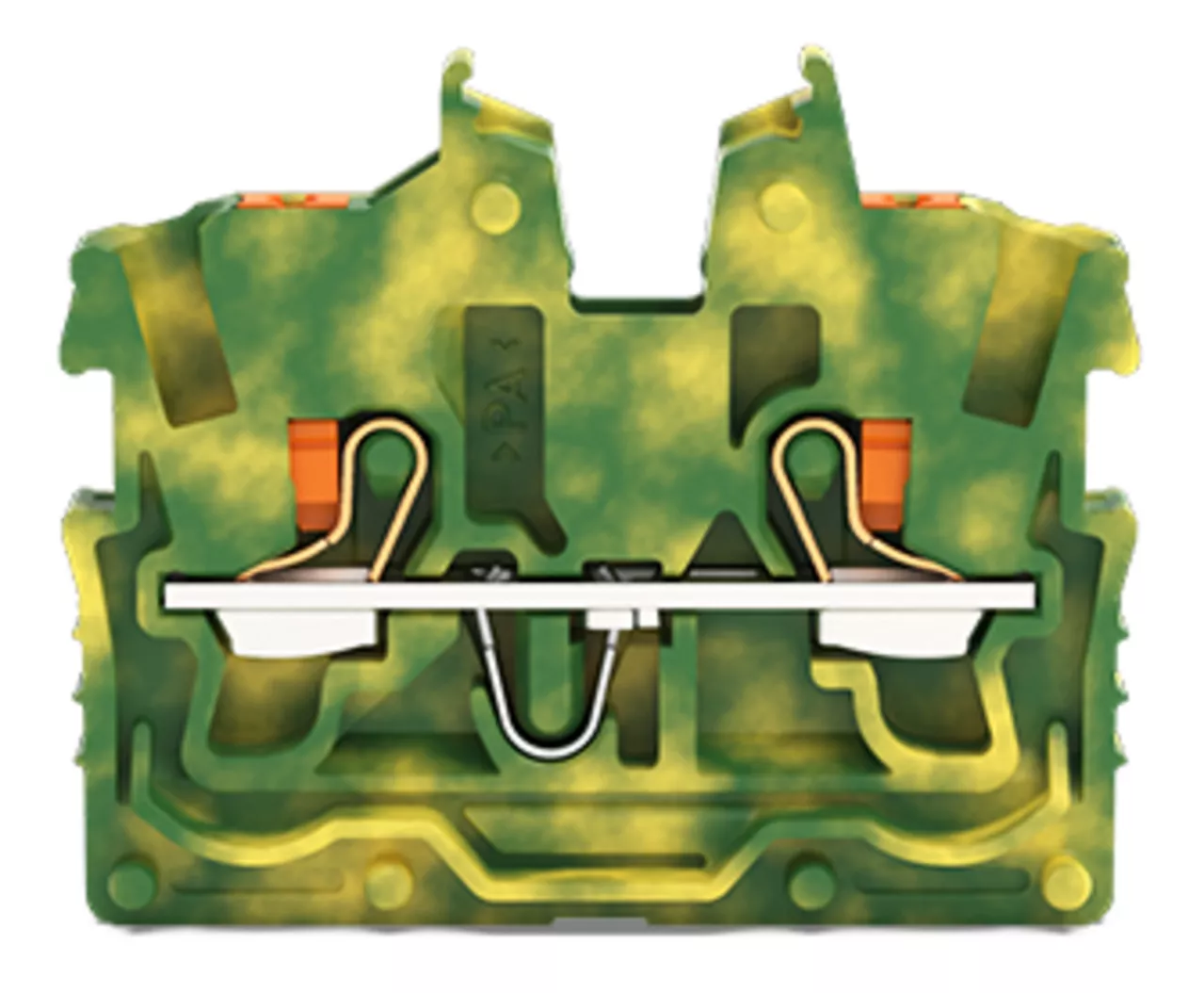 złączka przelotowa Mini 2-przewodowa; z przyciskami; 1 mm²; zł. wewn. bez stopki zatrz. bez uchwytu; opis z boku i na środku; z otworem pomiarowym; Push-in CAGE CLAMP®; 1,00 mm²; żółto-zielony
