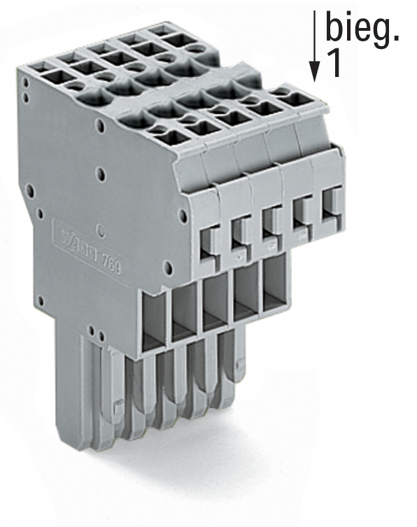 gniazdo 2-przewodowe; CAGE CLAMP®; 4 mm²; raster 5 mm; 5-bieg.; wypust kodujący; 4,00 mm²; szary