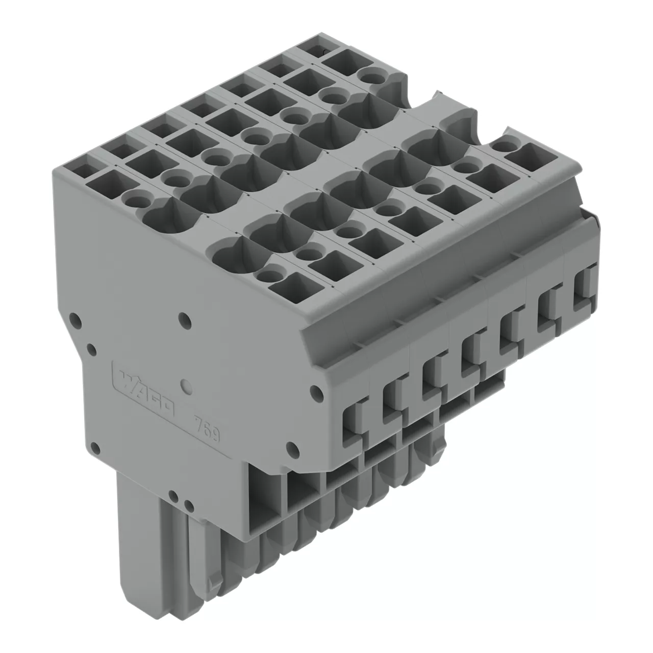 gniazdo 2-przewodowe; CAGE CLAMP®; 4 mm²; raster 5 mm; 7-bieg.; wypust kodujący; 4,00 mm²; szary