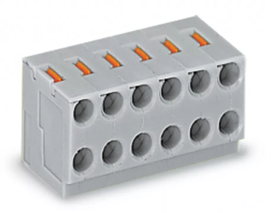gniazdo 2-przewodowe; przycisk; PUSH WIRE®; Ø 0,8 mm; raster 3,5 mm; 7-bieg.; do listwy pinów lutowniczych; szary