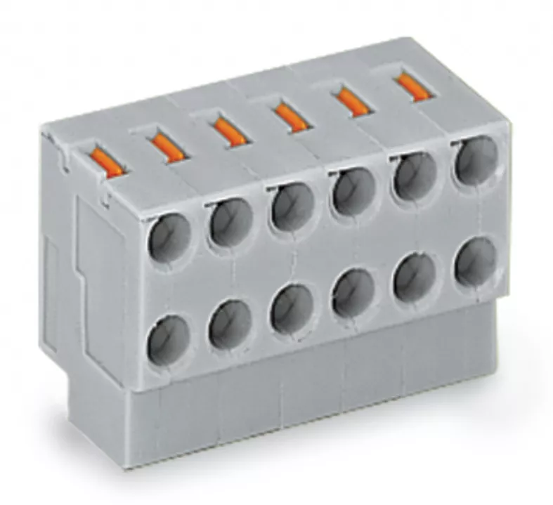 gniazdo 2-przewodowe; przycisk; PUSH WIRE®; Ø 0,8 mm; raster 3,5 mm; 9-bieg.; do listwy pinów lutowniczych; szary