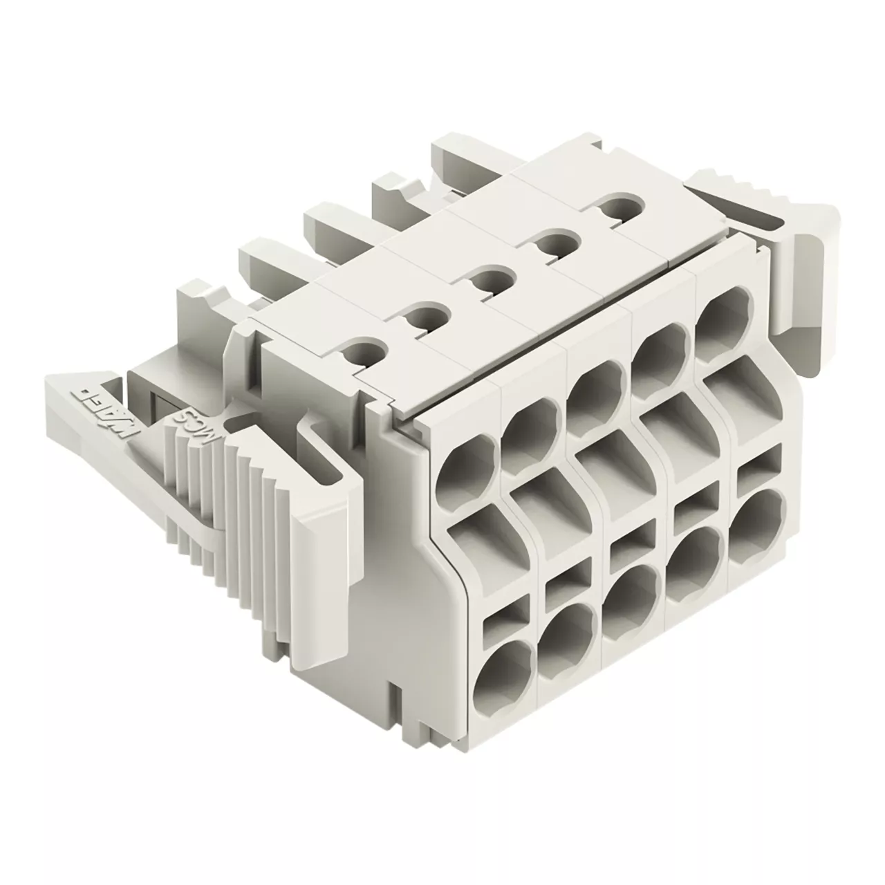 gniazdo 2-przewodowe; Push-in CAGE CLAMP®; 2,5 mm²; raster 5 mm; 5-bieg.; 100% ochrona przed błędnym połączeniem; boczne zaczepy ryglujące; 2,50 mm²; jasnoszary