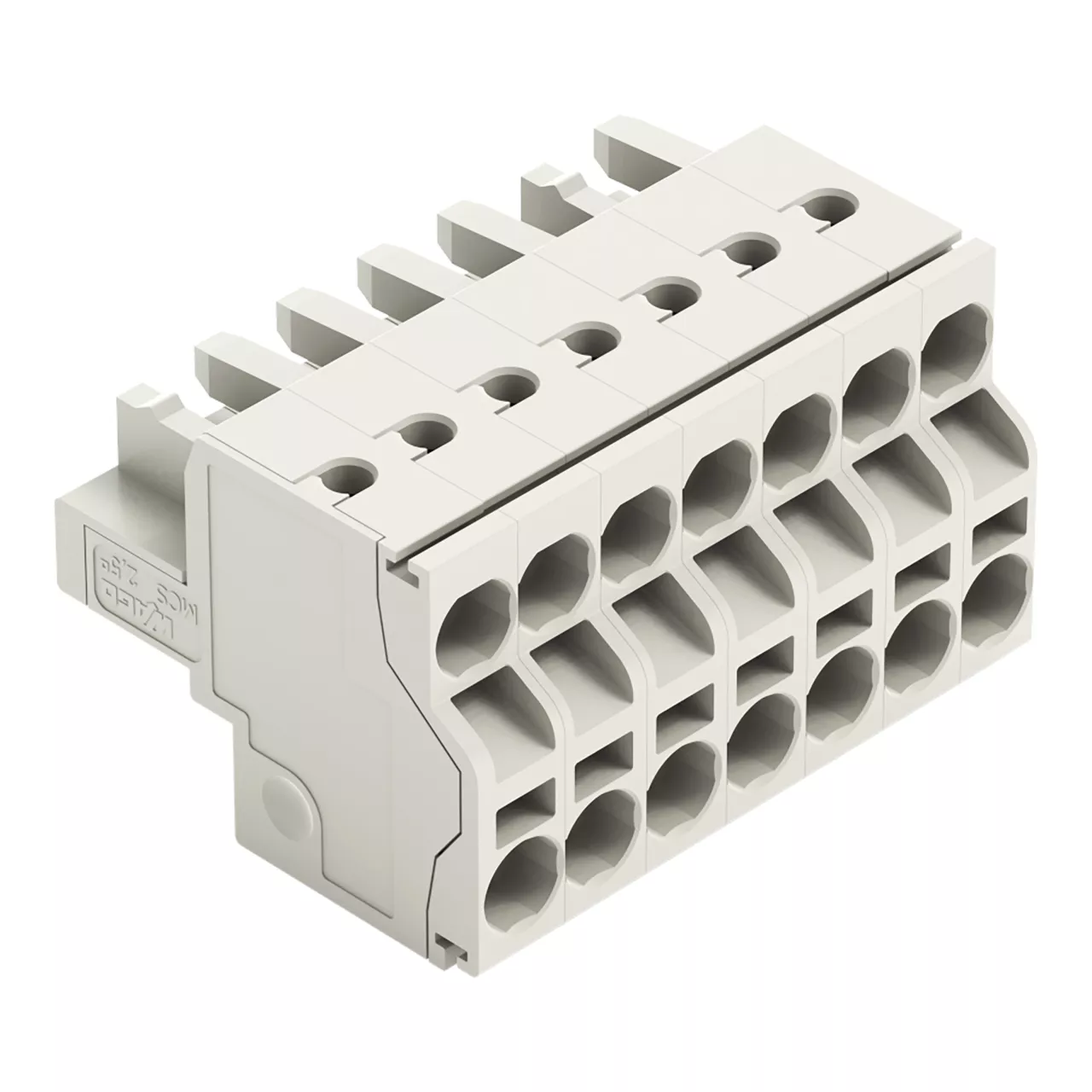 gniazdo 2-przewodowe; Push-in CAGE CLAMP®; 2,5 mm²; raster 5 mm; 7-bieg.; 100% ochrona przed błędnym połączeniem; ze zintegrowaną ścianką końcową; 2,50 mm²; jasnoszary