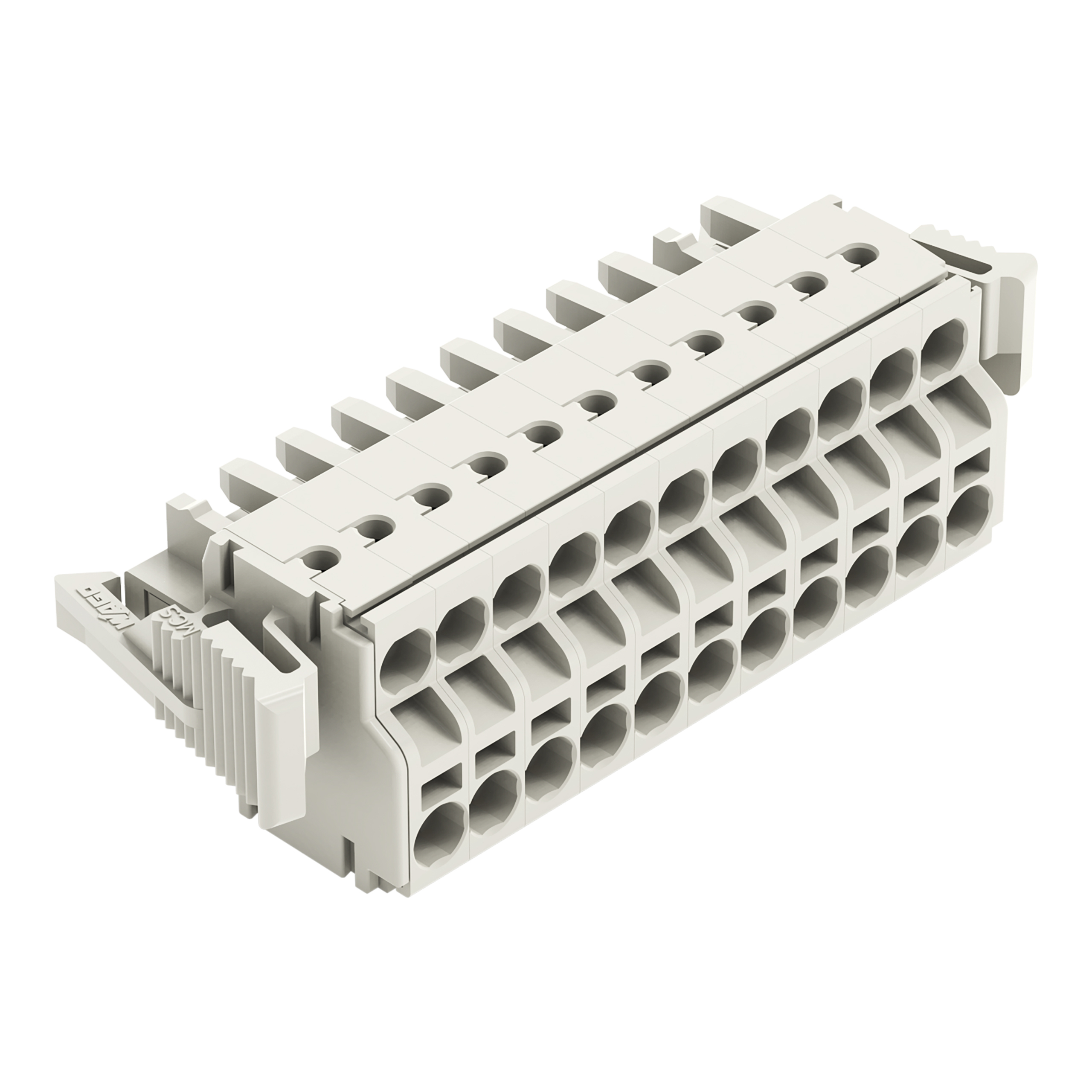 gniazdo 2-przewodowe; Push-in CAGE CLAMP®; 2,5 mm²; raster 5 mm; 11-bieg.; 100% ochrona przed błędnym połączeniem; boczne zaczepy ryglujące; 2,50 mm²; jasnoszary