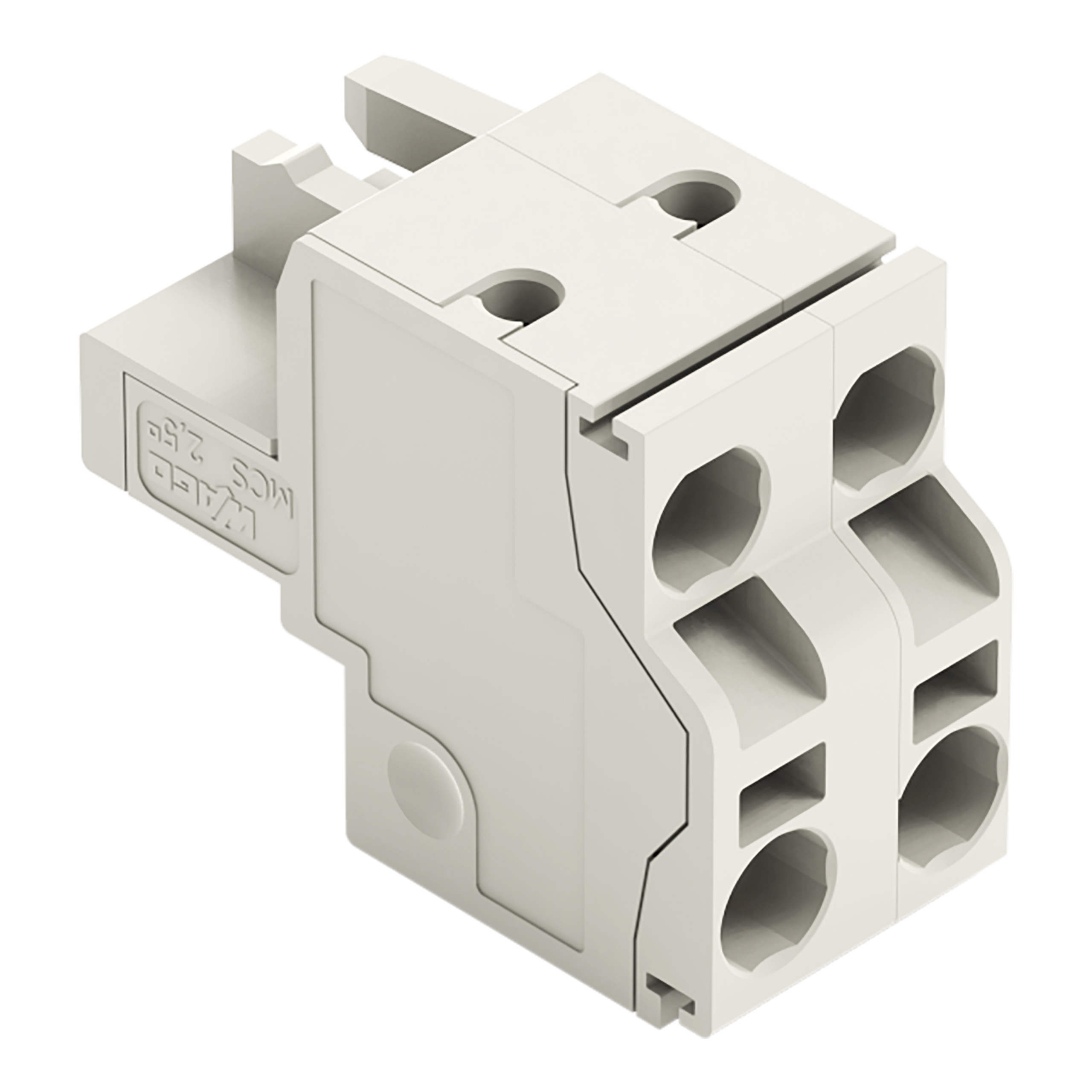 gniazdo 2-przewodowe; Push-in CAGE CLAMP®; 2,5 mm²; raster 7,5 mm; 2-bieg.; 100% ochrona przed błędnym połączeniem; ze zintegrowaną ścianką końcową; 2,50 mm²; jasnoszary