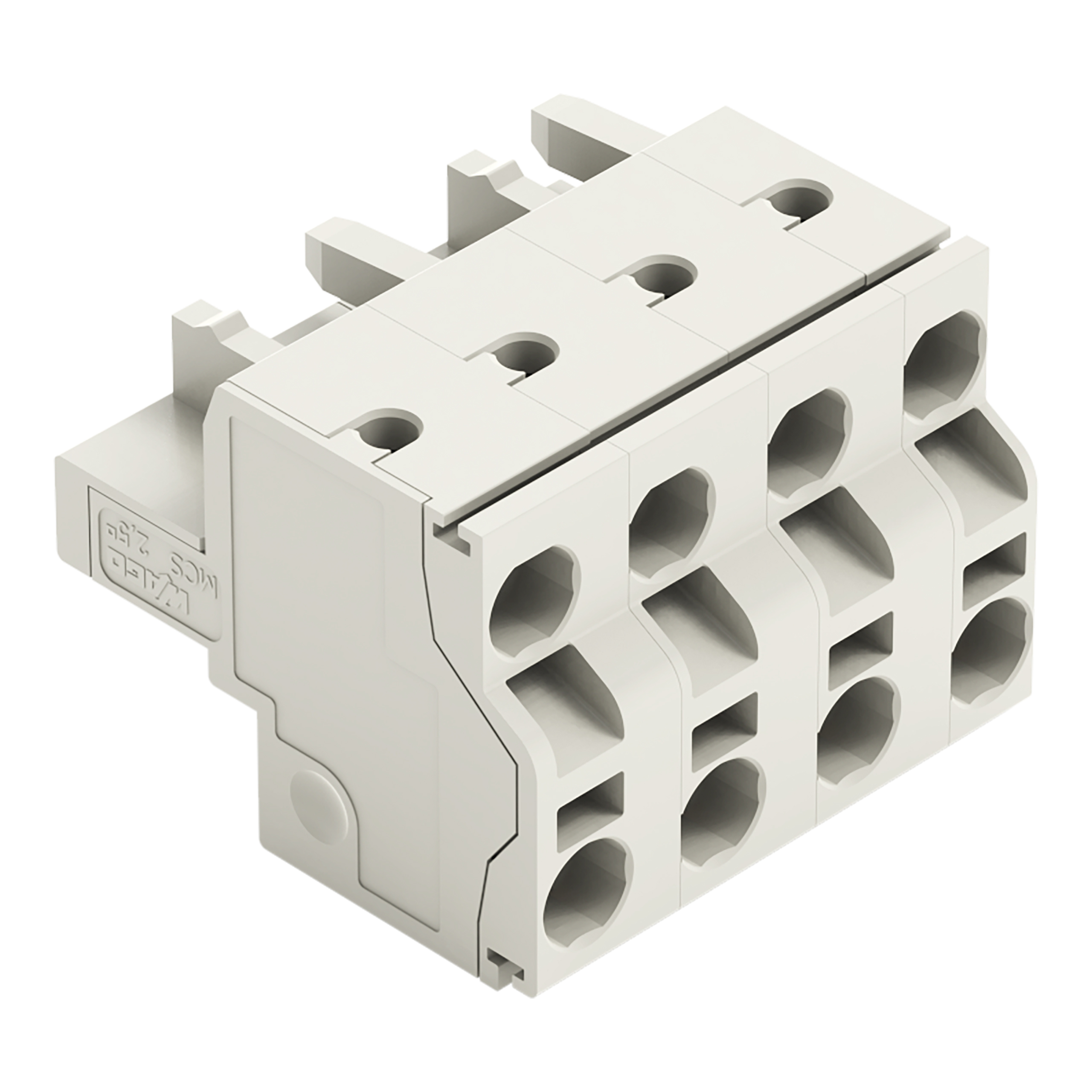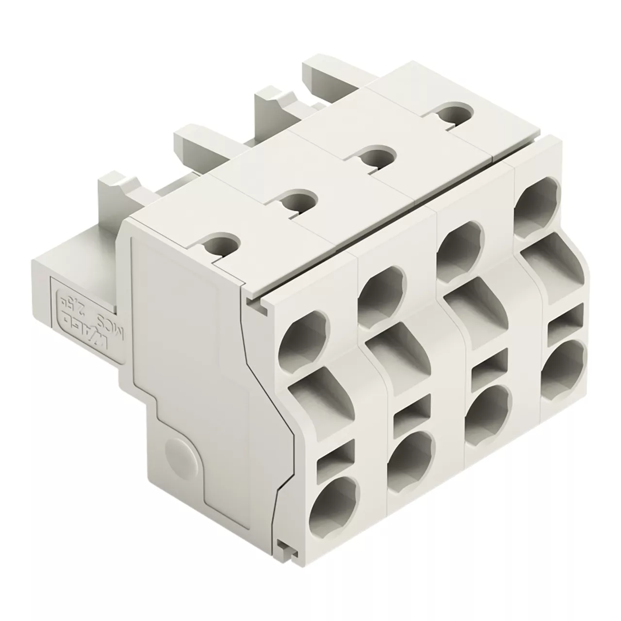 gniazdo 2-przewodowe; Push-in CAGE CLAMP®; 2,5 mm²; raster 7,5 mm; 4-bieg.; 100% ochrona przed błędnym połączeniem; ze zintegrowaną ścianką końcową; 2,50 mm²; jasnoszary
