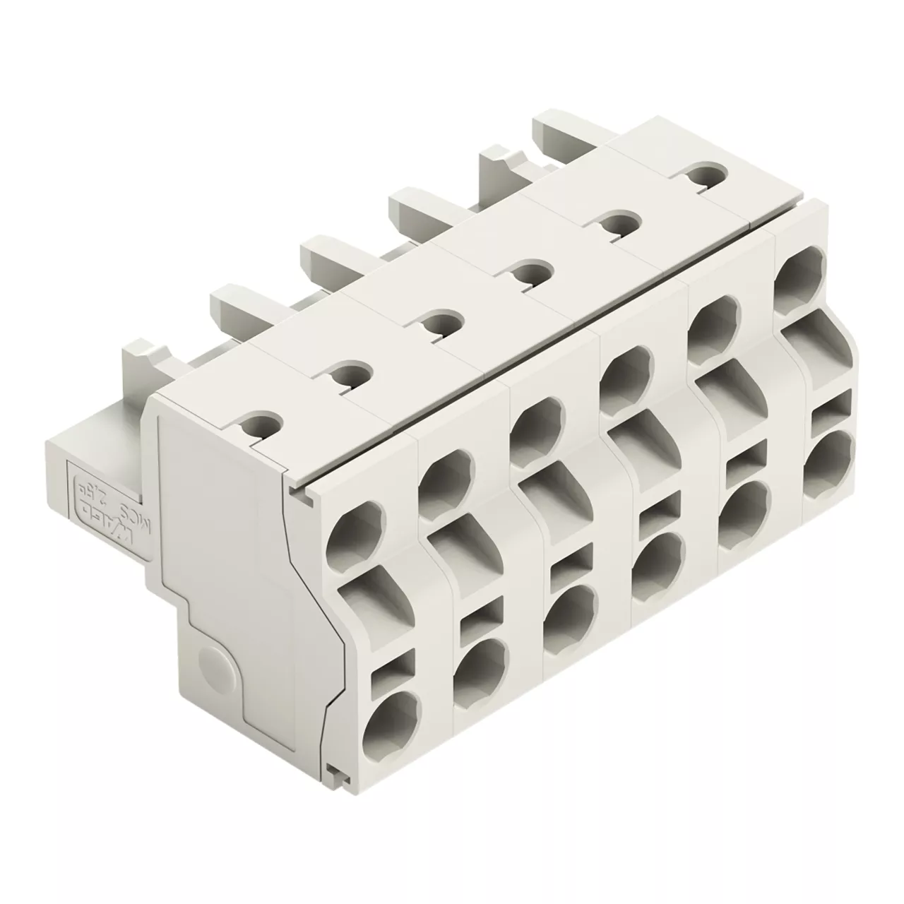 gniazdo 2-przewodowe; Push-in CAGE CLAMP®; 2,5 mm²; raster 7,5 mm; 6-bieg.; 100% ochrona przed błędnym połączeniem; ze zintegrowaną ścianką końcową; 2,50 mm²; jasnoszary