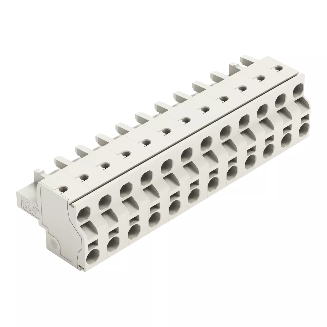 gniazdo 2-przewodowe; Push-in CAGE CLAMP®; 2,5 mm²; raster 7,5 mm; 12-bieg.; 100% ochrona przed błędnym połączeniem; ze zintegrowaną ścianką końcową; 2,50 mm²; jasnoszary