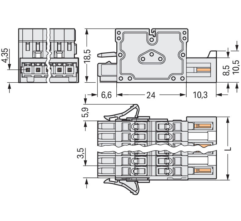 2-przewodowe wtyki kombi pełna ochrona przed błędnym wetknięciem, jasnoszary 734-365/037-000
