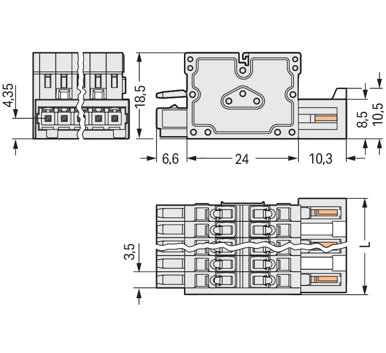 2-przewodowe wtyki kombi pełna ochrona przed błędnym wetknięciem, jasnoszary 734-372