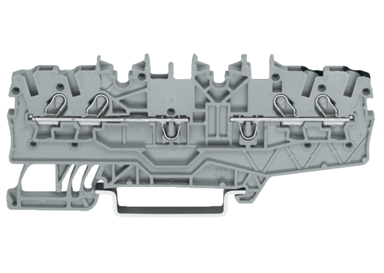 złączka przelotowa podwójna; 1 mm²; możliwość mostkowania obu potencjałów; opis z boku i na środku; na szynę TS 35 x 15 i 35 x 7,5; Push-in CAGE CLAMP®; 1,00 mm²; szary