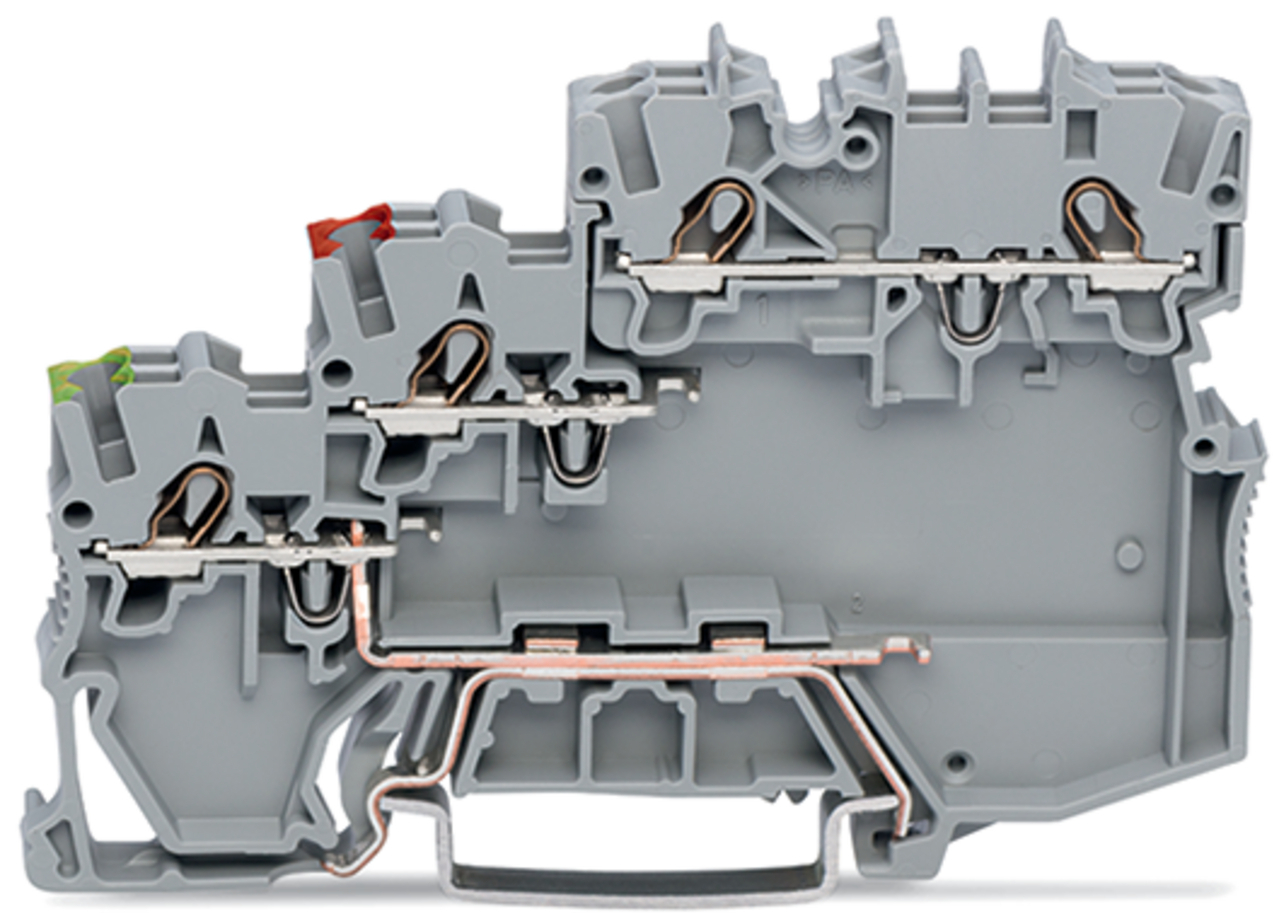 złączka sygnałowa 3-piętrowa; typu NPN; z przyłączem PE; z otworami na przew. z kolor. nadrukiem; 1 mm²; Push-in CAGE CLAMP®; 1,00 mm²; szary