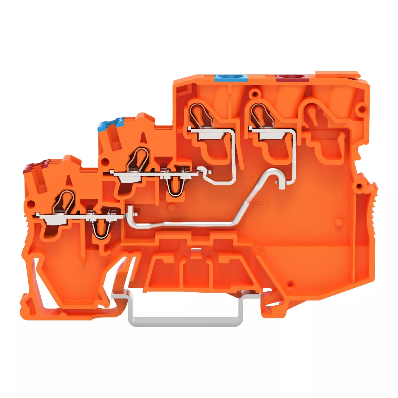złączka zasilająca sygnałowa 3-piętrowa; zasilanie od strony szafy sterowniczej; z otworami na przew. z kolor. nadrukiem; 2,5 mm²; Push-in CAGE CLAMP®; 2,50 mm²; pomarańczowy