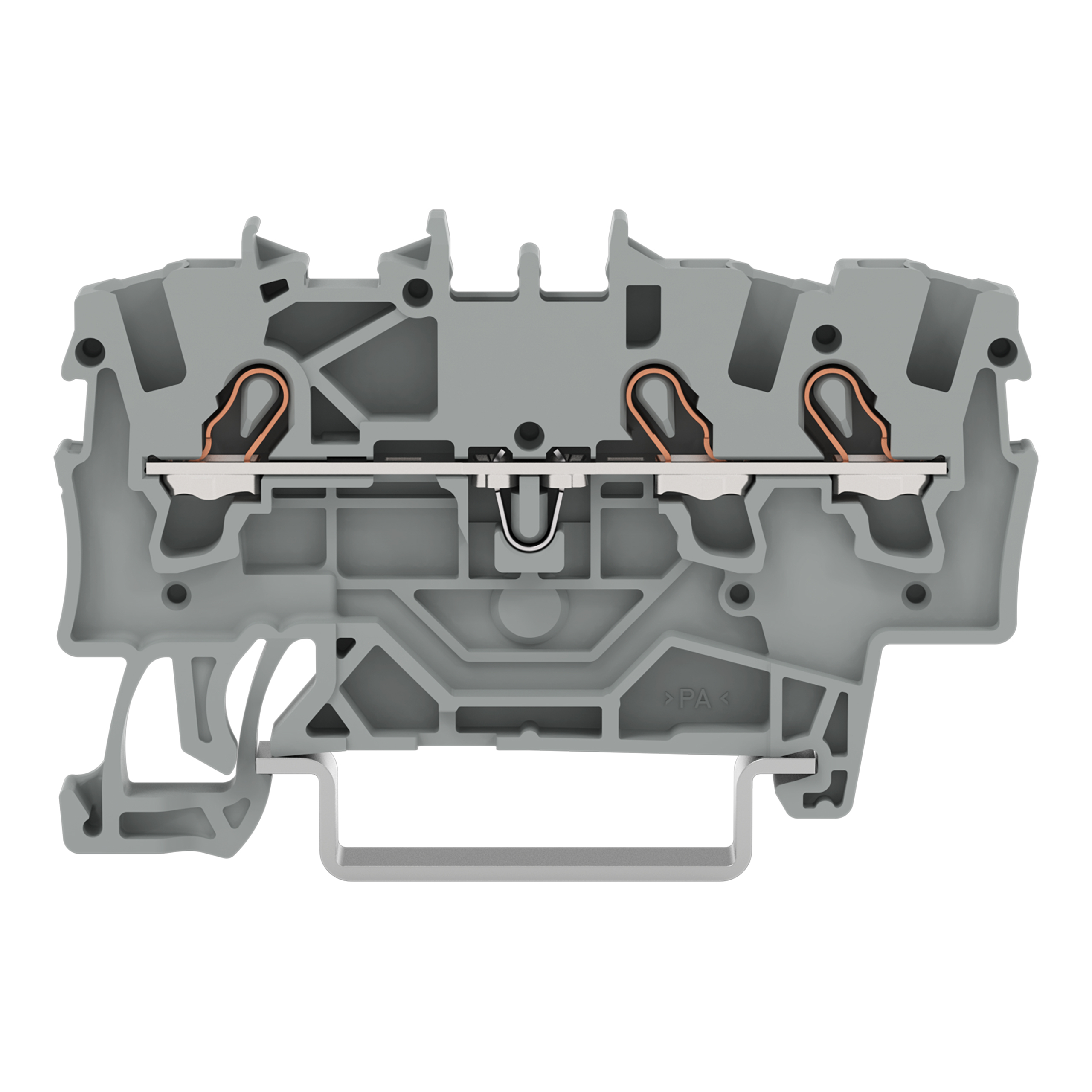 złączka przelotowa 3-przewodowa; 1,5 mm²; do zastosowań Ex e II; opis z boku i na środku; na szynę TS 35 x 15 i 35 x 7,5; Push-in CAGE CLAMP®; 1,50 mm²; jasnoszary