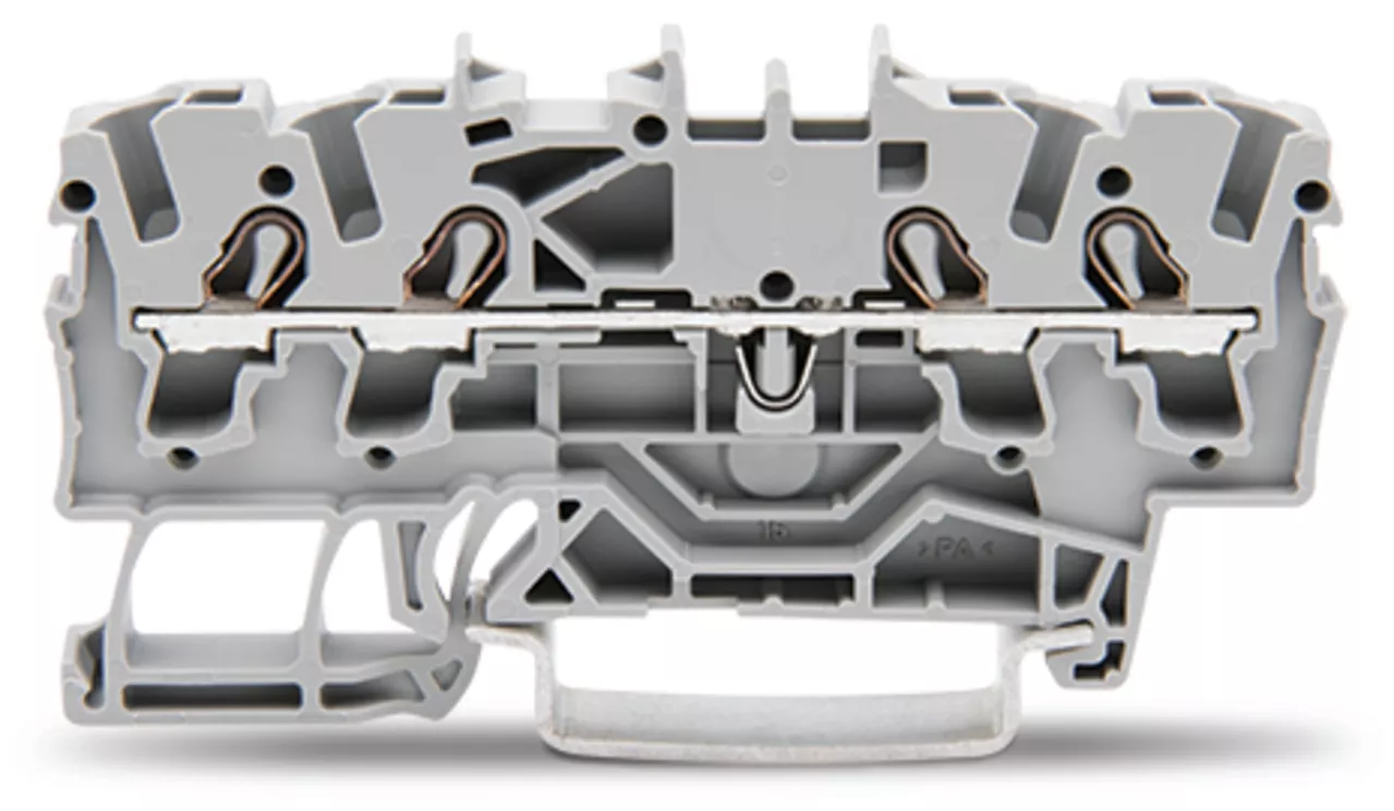 złączka przelotowa 4-przewodowa; 2,5 mm²; do zastosowań Ex e II; opis z boku i na środku; na szynę TS 35 x 15 i 35 x 7,5; Push-in CAGE CLAMP®; 2,50 mm²; brązowy