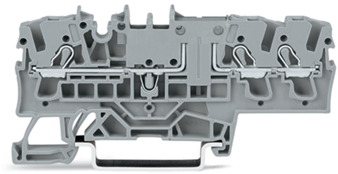 złączka przelotowa 3-przewodowa; 2,5 mm²; z możliwością pomiaru; do zastosowań Ex e II; o kształcie złączki rozłączalnej 3-przewodowej; opis z boku i na środku; na szynę TS 35 x 15 i 35 x 7,5; Push-in CAGE CLAMP®; 2,50 mm²; pomarańczowy